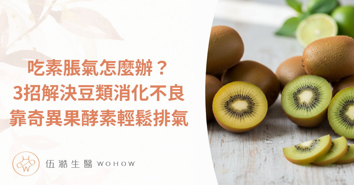 為了健康或環保開始嘗試吃素,結果身體卻反而「一肚子氣」?許多素食者都有這樣的困擾:明明吃得很清淡健康,為什麼肚子總是脹脹的、甚至排氣變多?其實,這很可能跟你攝取了大量的豆類與植物性蛋白質有關。本文將解析素食脹氣的兩大主因,並教你如何利用「酵素」來輕鬆化解消化負擔。文章目錄1. 為什麼吃素容易脹氣?兩大「產氣元兇」2. 豆類怎麼吃才不脹氣?預處理小撇步3. 素食者的救星:奇異果酵素4. FAQ 常見問題:素食消化與酵素解答為什麼吃素容易脹氣?兩大「產氣元兇」素食者為了補充足夠的蛋白質,往往會大量攝取黃豆、黑豆、鷹嘴豆等豆製品。這些食物雖然營養,但含有兩種容易讓腸道「生氣」的物質:1. 難消化的寡糖豆類外皮含有豐富的水蘇糖和棉籽糖。人體腸道缺乏分解這些寡糖的酵素,因此它們會直接進入大腸,被腸道細菌分解發酵,進而產生大量的氫氣與二氧化碳。2. 結構緊密的植物性蛋白質雖然植物蛋白是優質蛋白質,但某些豆類的蛋白質結構較為緊密,若未經適當烹調或咀嚼不完全,胃部難以將其完全分解。未消化完全的蛋白質進入腸道後,同樣會引起發酵與脹氣。豆類怎麼吃才不脹氣?預處理小撇步別因為怕脹氣就放棄豆類!只要改變烹調方式,就能大幅降低產氣機率:浸泡並換水: 煮豆子前至少浸泡 8 小時,且中間要換水,這能溶出部分易產氣的寡糖。催芽: 讓豆子稍微發芽(如發芽米、發芽豆漿),發芽過程會轉化部分澱粉與寡糖,使其更容易消化。選擇發酵豆製品: 納豆、天貝、味噌等經過發酵的食品,其蛋白質已被微生物預先分解,是素食者最友善的選擇。素食者的救星:奇異果酵素 (Actinidin)除了改變烹調方式,「加強分解能力」是更直接的手段。在眾多天然食物中,綠色奇異果含有一種獨特的酵素—奇異果酵素,對素食者特別有幫助。專攻蛋白質的天然剪刀不同於鳳梨酵素主要針對肉類纖維,研究發現 奇異果酵素 對於植物蛋白、動物蛋白有極佳的分解能力。它就像一把剪刀,能在胃部酸性環境下運作,將大分子的豆類蛋白質切剪成小分子胺基酸,減少食物停留在胃部的時間,從源頭減少脹氣發生。💡 素食者的消化與養菌新選擇: 現代科技已經能將紐西蘭綠色、黃金奇異果製成高濃度的天然粉末。不僅保留了關鍵的 奇異果酵素 幫助分解蛋白質,還含有珍貴的植化素與奇異果纖維,能作為「益生元」滋養腸道好菌。搭配果寡糖與菊苣纖維,是素食者調整體質、告別脹氣的純天然輔助食品。FAQ 常見問題:素食消化與酵素解答Q1:吃豆腐、豆漿也會脹氣嗎?會,但比整顆豆子好。豆腐和豆漿在製作過程中濾掉了大量的豆渣(纖維與部分寡糖),因此產氣程度通常比直接吃黃豆、黑豆來得低。但若您腸胃極度敏感,建議搭配含有蛋白質分解酵素的水果或補充品食用。Q2:奇異果酵素跟一般市售酵素有什麼不同?針對性不同。市售綜合酵素通常來源複雜,奇異果酵素是單一來源的天然蛋白酶,具有明確的臨床研究其對「蛋白質消化」與「胃部排空」的效果,且不含瀉藥成分,適合長期保養腸道。Q3:我是全素者,可以食用奇異果粉嗎?可以。我們的奇異果粉末原料(Actazin 與 Livaux)皆源自紐西蘭天然奇異果,搭配的果寡糖與菊苣纖維亦為植物來源,製程中無動物性成分,是全素者補充酵素與益生元的理想選擇。素食生活應該是輕盈無負擔的。只要掌握正確的豆類處理方式,並適時補充能幫助分解蛋白質的天然酵素,你也能享受植物性飲食帶來的健康與活力,不再為飯後脹氣所苦!